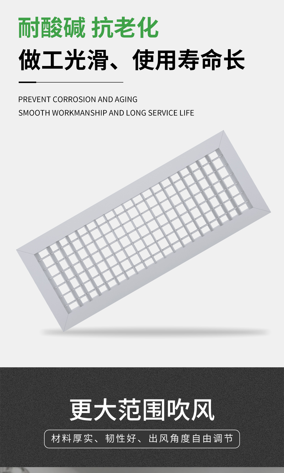 調節百葉式送風口 可直接與風機盤管配套使用 尺寸由用戶選定 可用于中央空調系統的末端,葉片角,度可在任意范圍內調節,葉片在不同角度,可得到不同的送風距離和不同的擴散角